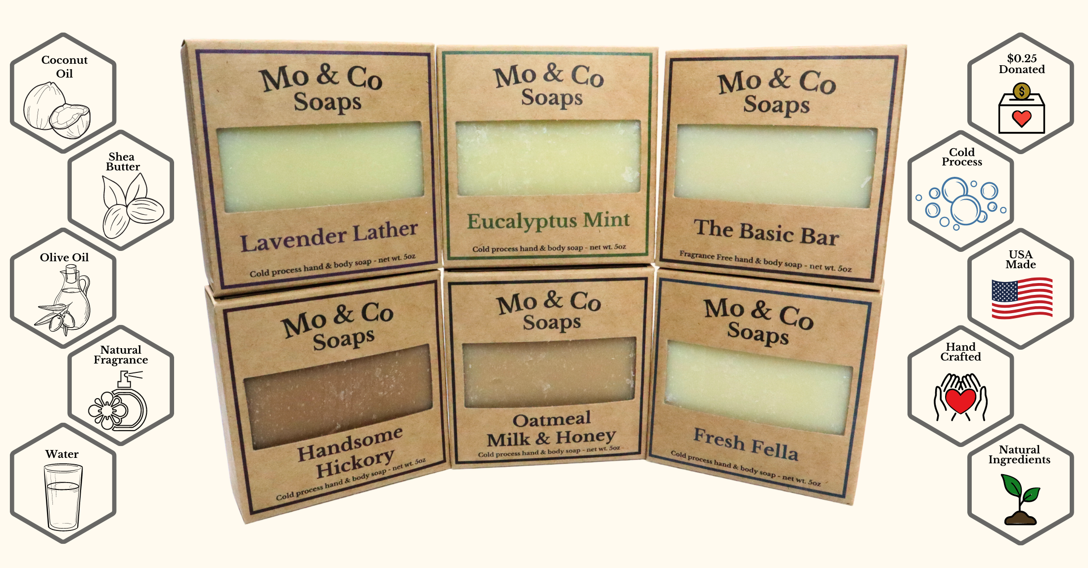 Our customers absolutely love their Mo & Co Soaps. Each soap is only made of 6 ingredients.